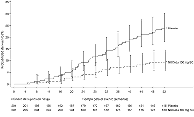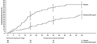La administración subcutánea de 300 mg de NUCALA® tuvo aproximadamente tres veces la exposición sistémica de 100 mg de mepolizumab.