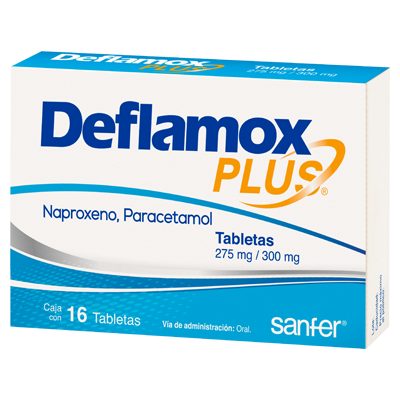 El paracetamol es un analgésico-antipirético no narcótico con acción selectiva en el sistema nervioso central sin bloqueo cortical, su absorción por el tubo digestivo es rápida y completa, con una vida media de 4 horas después de una administración oral única. Aproximadamente, el 90 a 95% se conjuga con el ácido glucurónico y se elimina por vía urinaria en forma de metabolitos; solamente el 3% se elimina sin cambios. Su efecto terapéutico se prolonga hasta por seis horas a dosis terapéuticas produce irritación gástrica. Los estudios clínicos han demostrado grandes ventajas con la asociación del naproxeno sódico y el paracetamol, ya que se consigue el efecto antipirético y analgésico en menor tiempo y por periodos más prolongados con dosis menores y menores riesgos para el paciente.