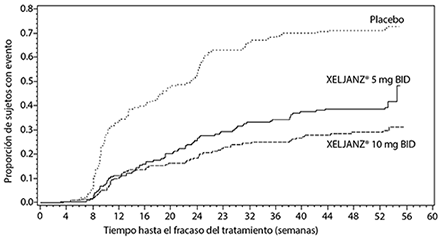 Mortalidad: Las tasas de incidencia (IR, por sus siglas en inglés), (IC del 95%), de la mortalidad por todas las causas para Xeljanz® 5 mg dos veces al día, Xeljanz® 10 mg dos veces al día, todo Xeljanz® (combina los grupos de tratamiento con 5 mg dos veces al día y 10 mg dos veces al día) y el inhibidor del TNF fueron de 0.50 (0.33, 0.74), 0.80 (0.57, 1.09), 0.65 (0.50, 0.82) y 0.34 (0.20, 0.54) eventos por cada 100 pacientes-año, respectivamente. En comparación con el inhibidor del TNF, el cociente de riesgos (HR, por sus siglas en inglés), (IC del 95%), para Xeljanz® 5 mg dos veces al día, Xeljanz® 10 mg dos veces al día y todo Xeljanz® fue de 1.49 (0.81, 2.74), 2.37 (1.34, 4.18) y 1.91 (1.12, 3.27), respectivamente.