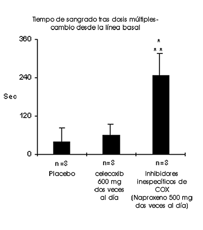 Artritis idiopática juvenil (AIJ) de inicio sistémico: Los AINEs, incluyendo celecoxib, deben usarse con precaución en pacientes con AIJ de inicio sistémico debido al riesgo de coagulación intravascular diseminada. Los pacientes a quienes se les administre celecoxib y que padezcan de AIJ de inicio sistémico deben vigilarse en cuanto al desarrollo de pruebas anormales de coagulación.