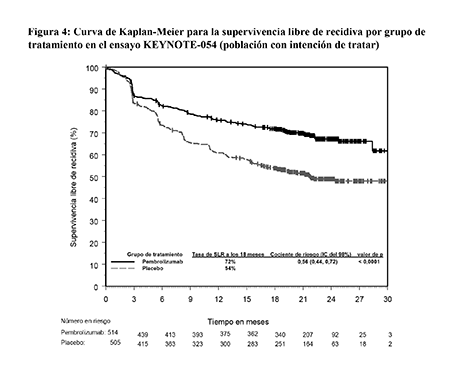 KEYTRUDA® en monoterapia está indicado para el tratamiento adyuvante en adultos con melanoma en estadio III y con afectación de los ganglios linfáticos que hayan sido sometidos a resección completa (ver Propiedades farmacodinámicas).