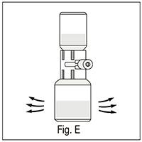 10. Agitar suavemente hasta completa disolución (fig. E); asegúrese de que el producto esté completamente disuelto, de otra manera el principio activo no pasará a través del filtro del dispositivo.